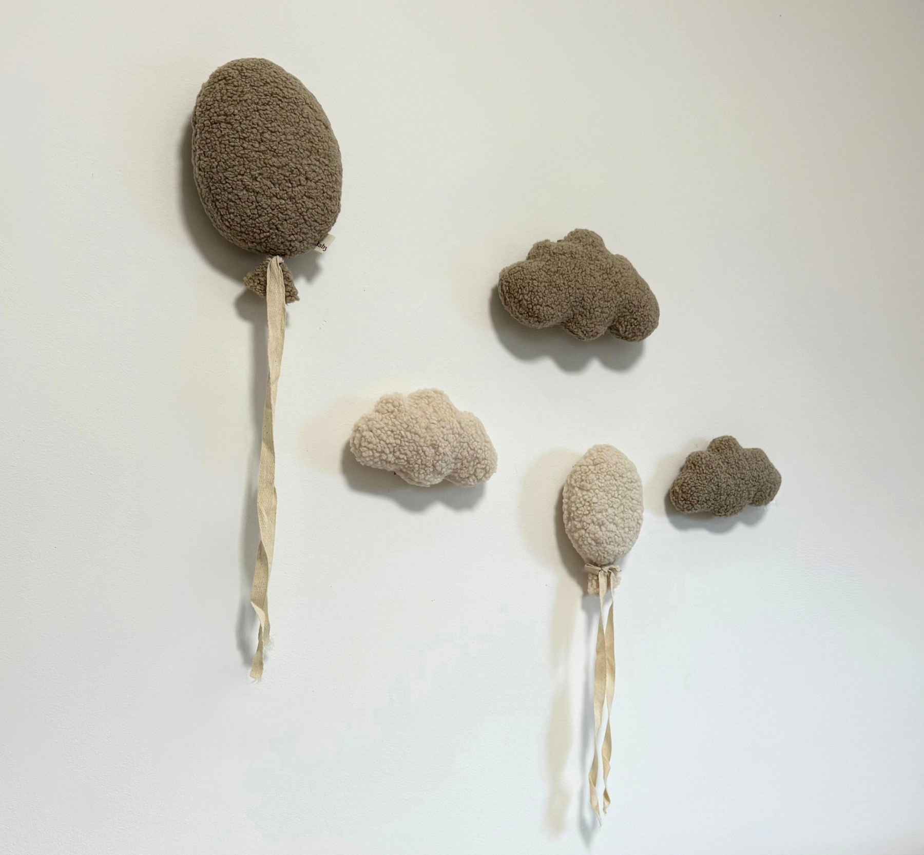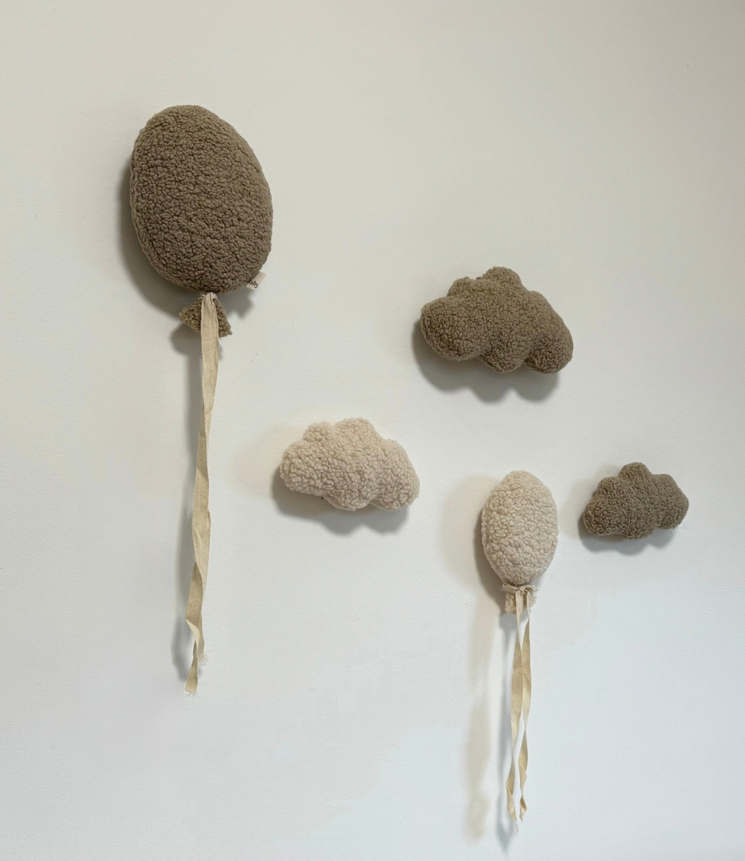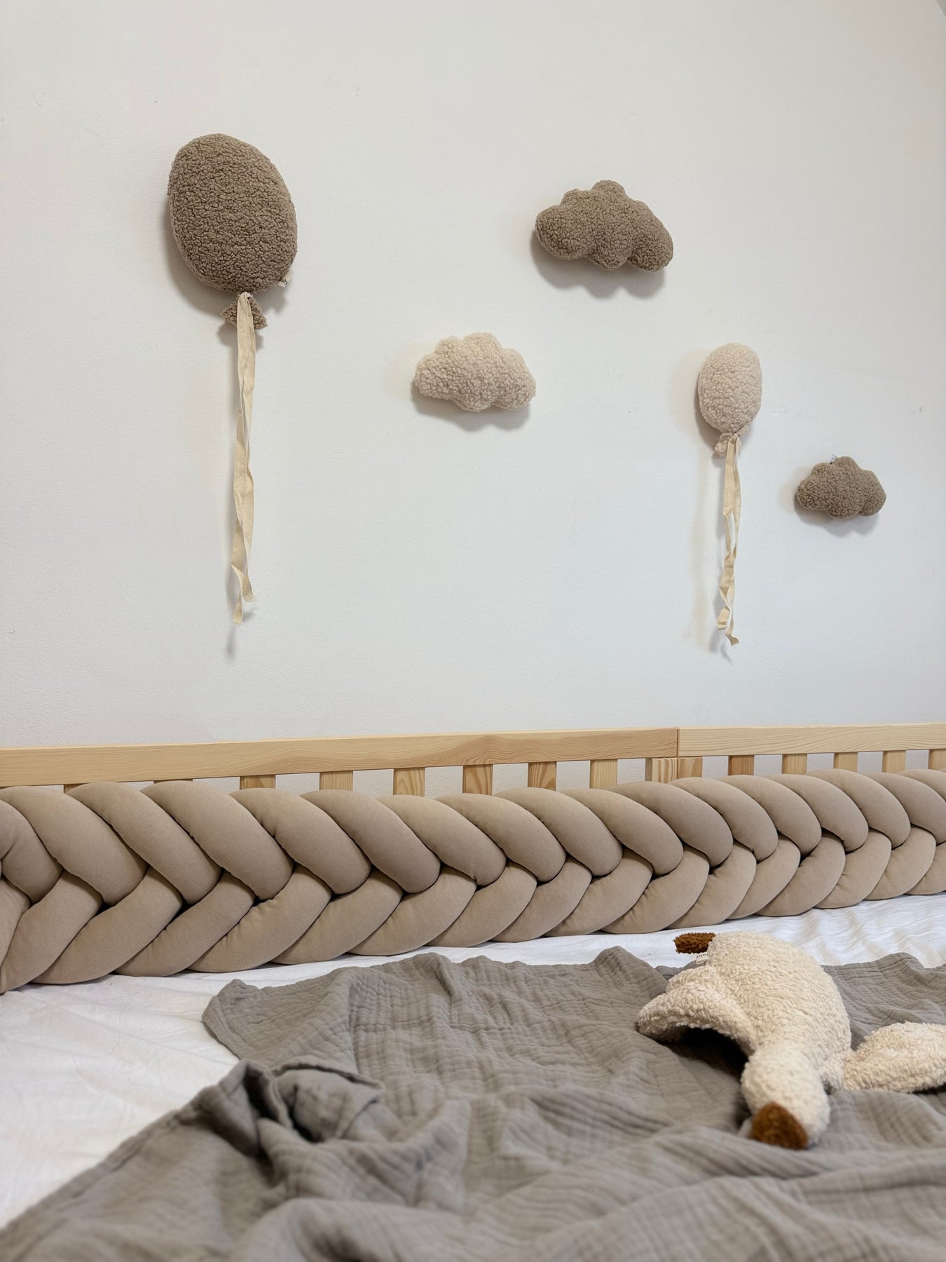 Dank der integrierten Aufhängung lassen sich Ballons und Wolken mühelos an der Wand befestieren. Die sanften Naturtöne passen ideal zu modernen, skandinavischen und warmen Kinderzimmerstilen.